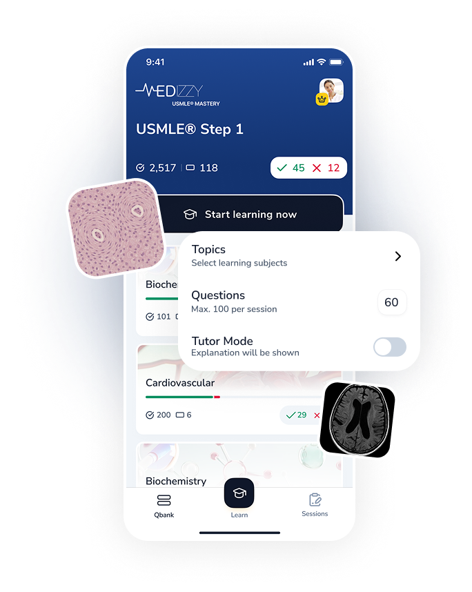 The United States Medical Licensing Examination (USMLE®) is a joint program of the Federation of State Medical Boards (FSMB®) and National Board of Medical Examiners (NBME®). NATIONALLY CERTIFIED EMERGENCY MEDICAL TECHNICIAN (NREMT®) is a trademark of National Registry of Emergency Medical Technicians. None of the trademark holders are affiliated with MEDizzy LTD.